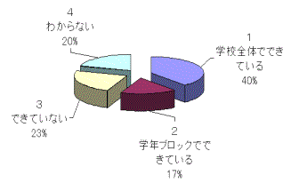 学校全体でできているが40%を占めていて、これらの学校ではすでに4月当初から校内研修などで取り上げられていることがうかがえる。さらに学年ブロックでできているの17%を合わせると、57%の教師が、総合的な学習の時間の評価の重要性について、学校もしくは学年で共通理解できていることがわかった。通知票や指導要録への記入という面からも、43%の教師については、今後早急に評価の重要性についての認識が求められるだろう。